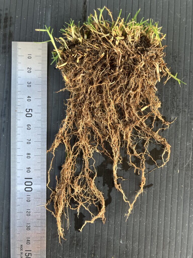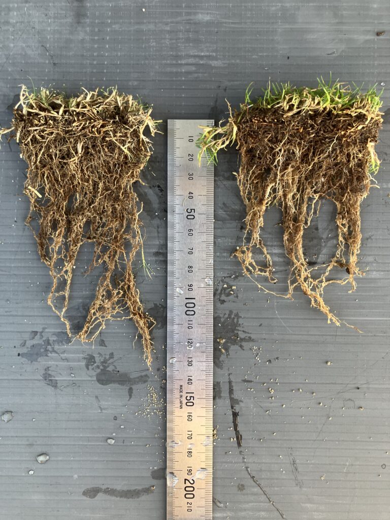 一度根が深くなっても暑さや踏圧のストレスで根が短くなります。